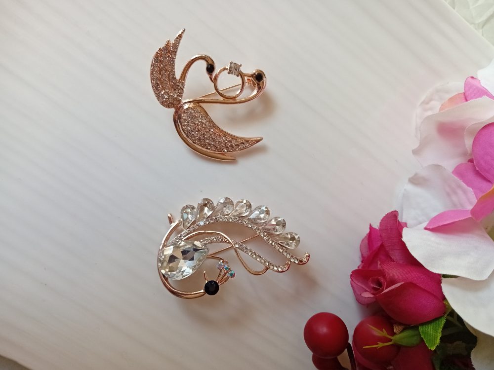 گلسینه دو قوی نگین دار و سیمرغ نگینی